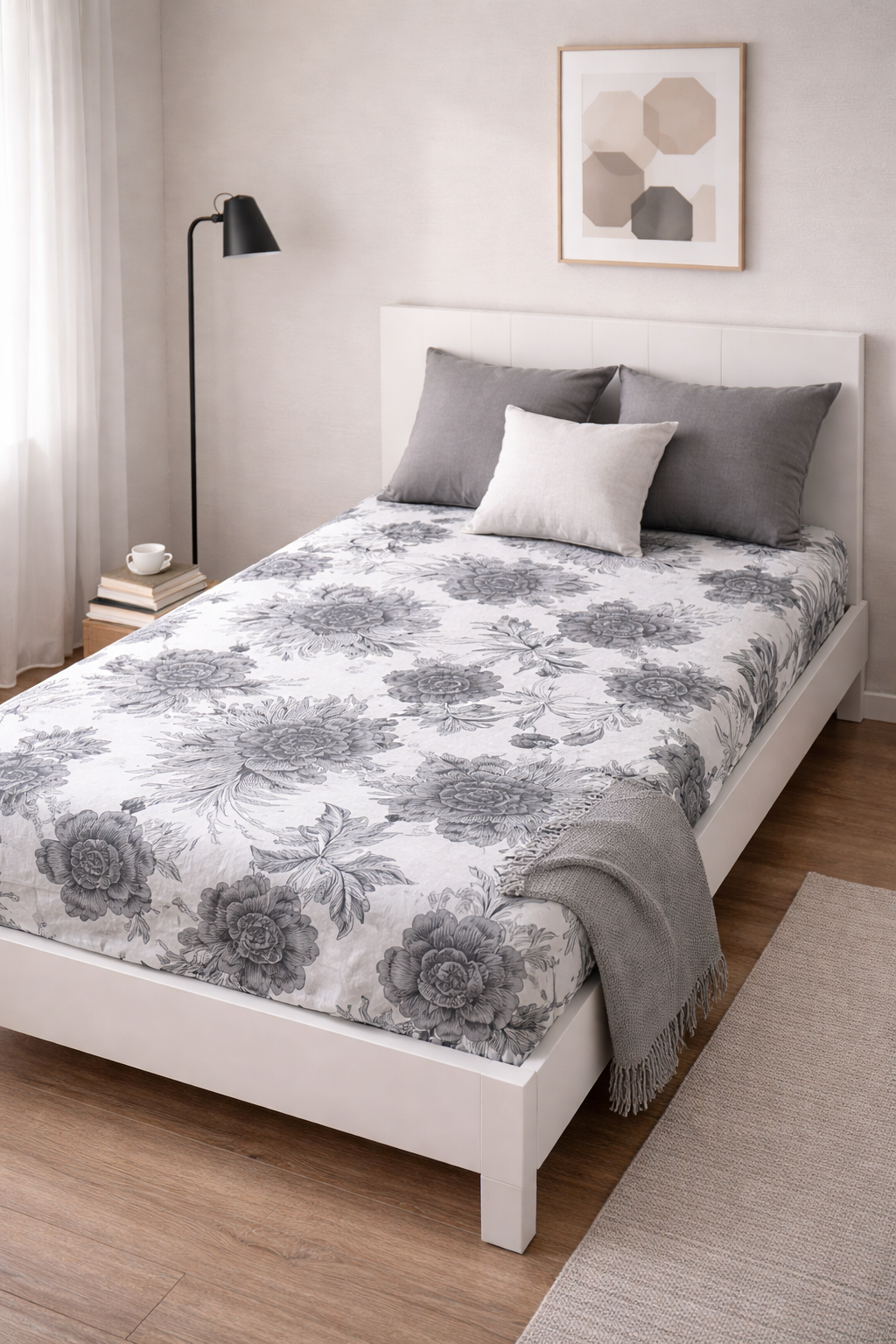Experience comfort and style with our Single Cot Bedsheets, crafted from soft and breathable fabric for a cozy and comfortable sleep.