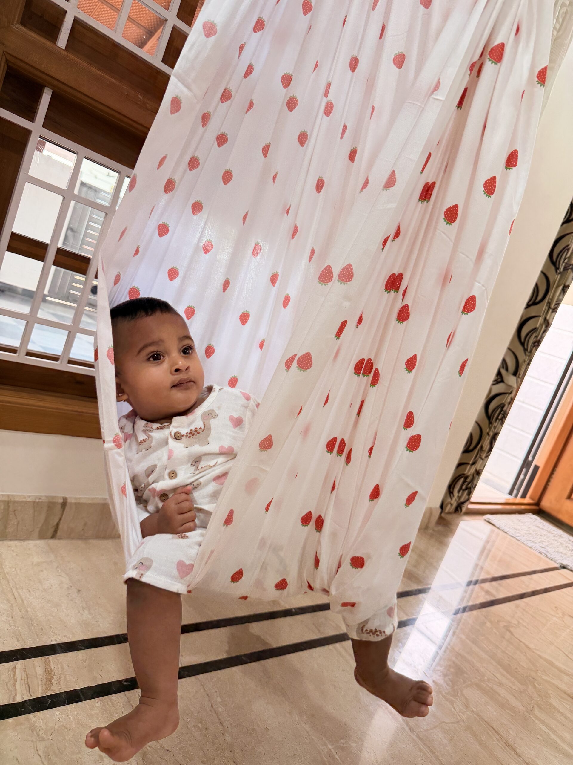 Cute strawberry printed cotton thottil.