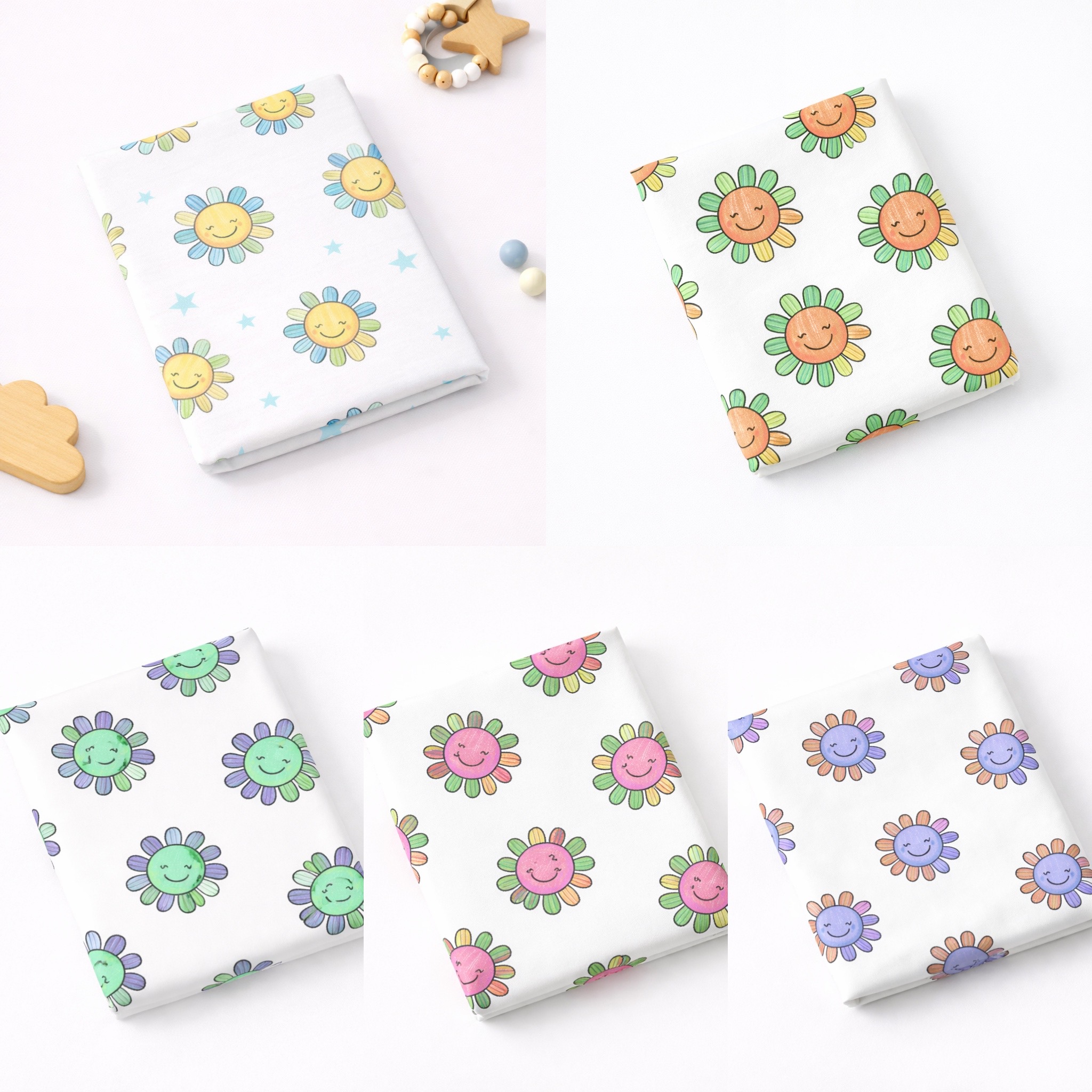 Bright smiling sun prints bring warmth and happiness to baby sleep.