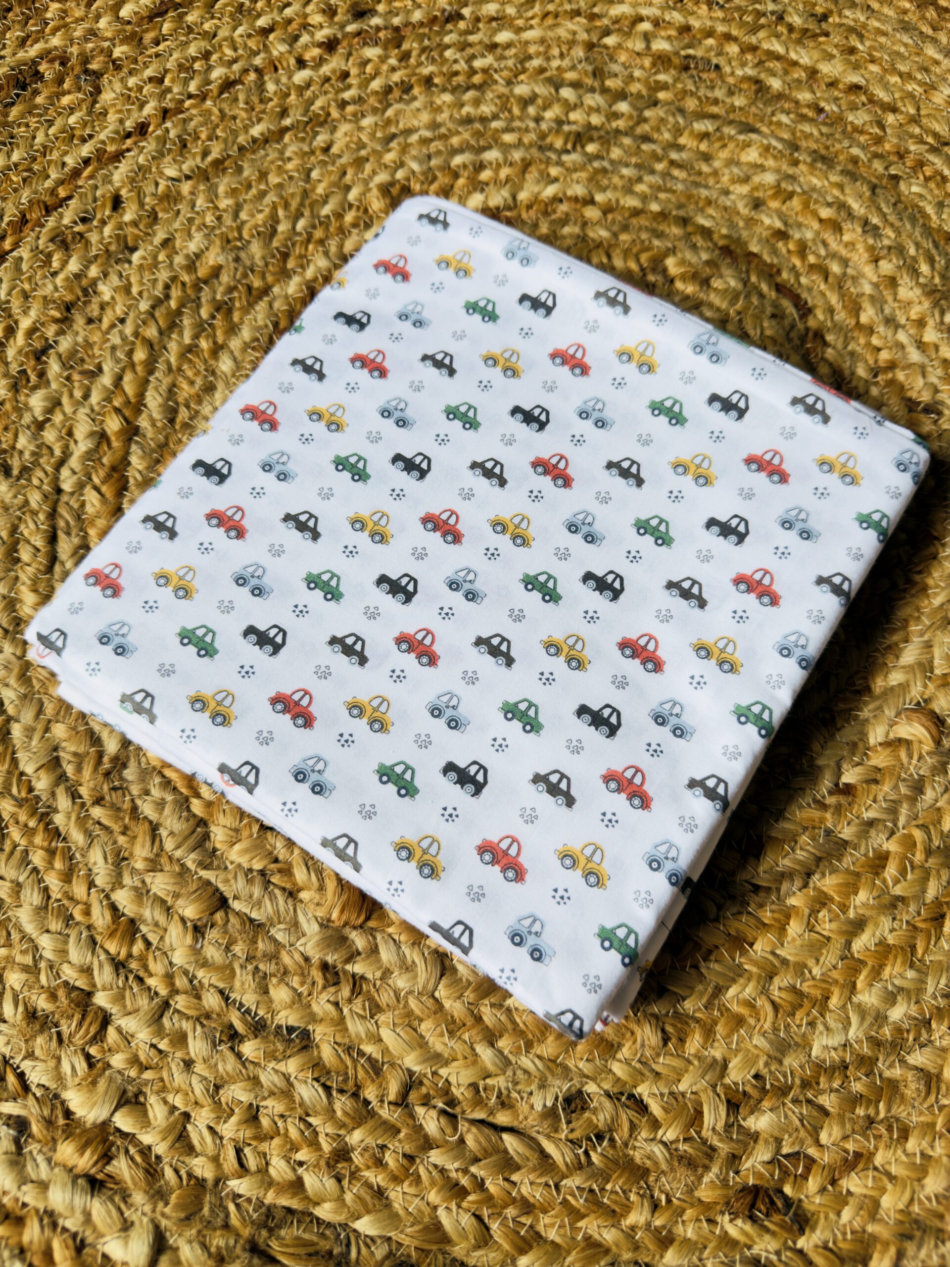 Soft cotton 3.5 meters thottil with adorable mini car prints.