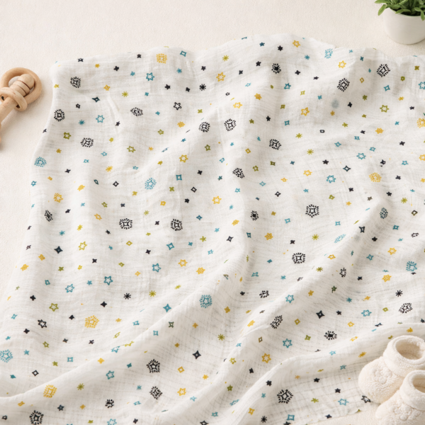 Let your baby drift into comfort with our Twinkle Star Muslin Swaddle. Designed with playful star prints, this breathable muslin fabric keeps your baby snug without overheating.